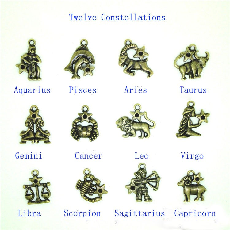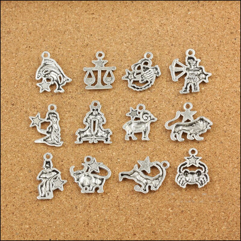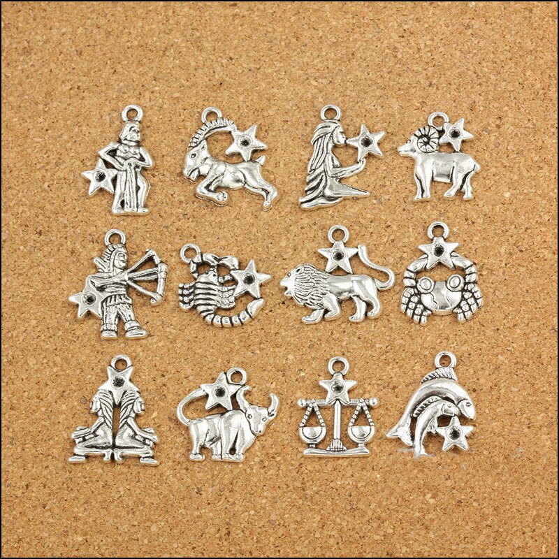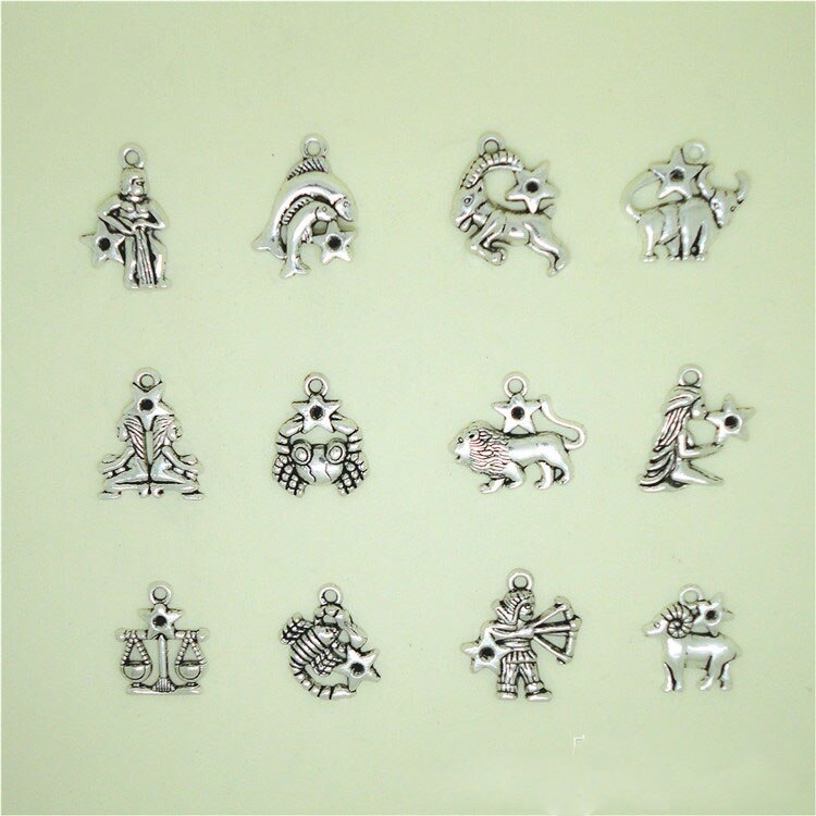 High Quality 120 Pieces(10 sets)/Lot 22mm*20mm Antique Silver Plated Small Zodiac Charms For Jewelry Making Factory Wholesale