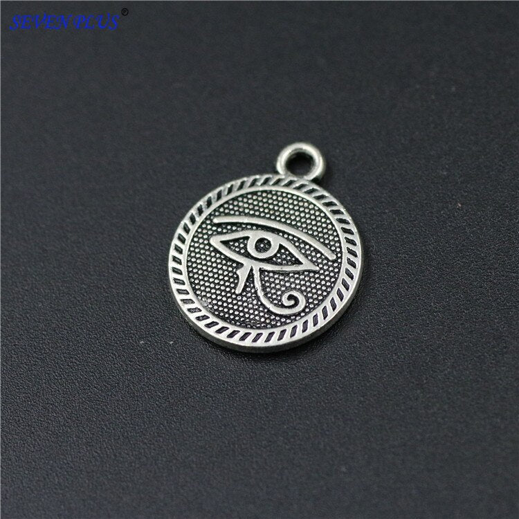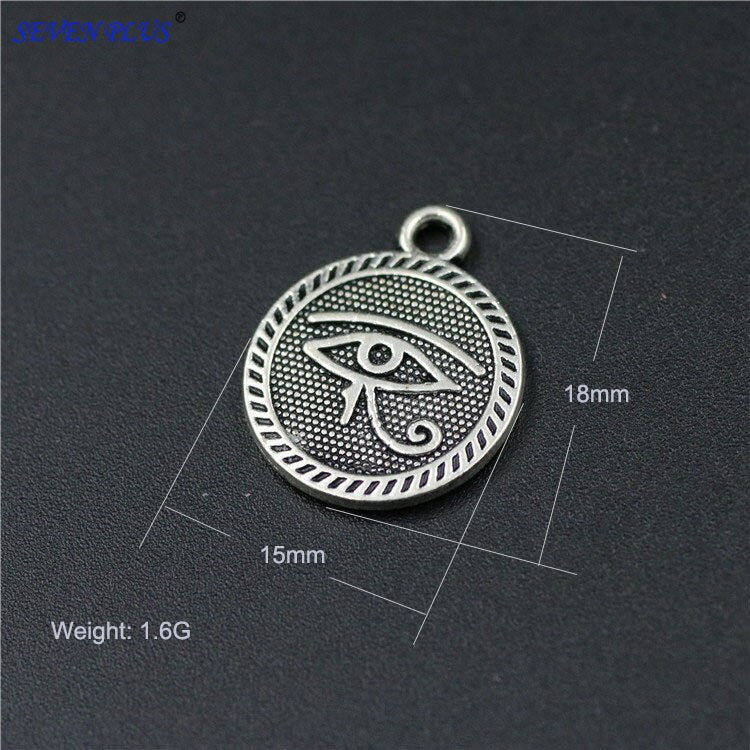 High Quality 20 Pieces/Lot 15mm*18mm Antique Silver Plated Round Disc Evil Eye Charms For Jewelry Making