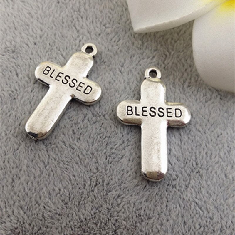 High Quality 20 Pieces/Lot 19*22mm Antique silver Color Cross Blessed Charm pendant charm for jewelry making