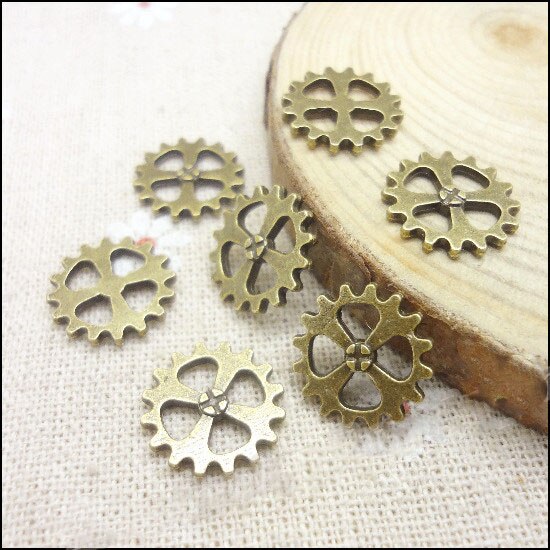 High Quality 20 Pieces/Lot Diameter 14mm Antique Bronze Plated Steampunk Gear Charms For Jewelry Handmade