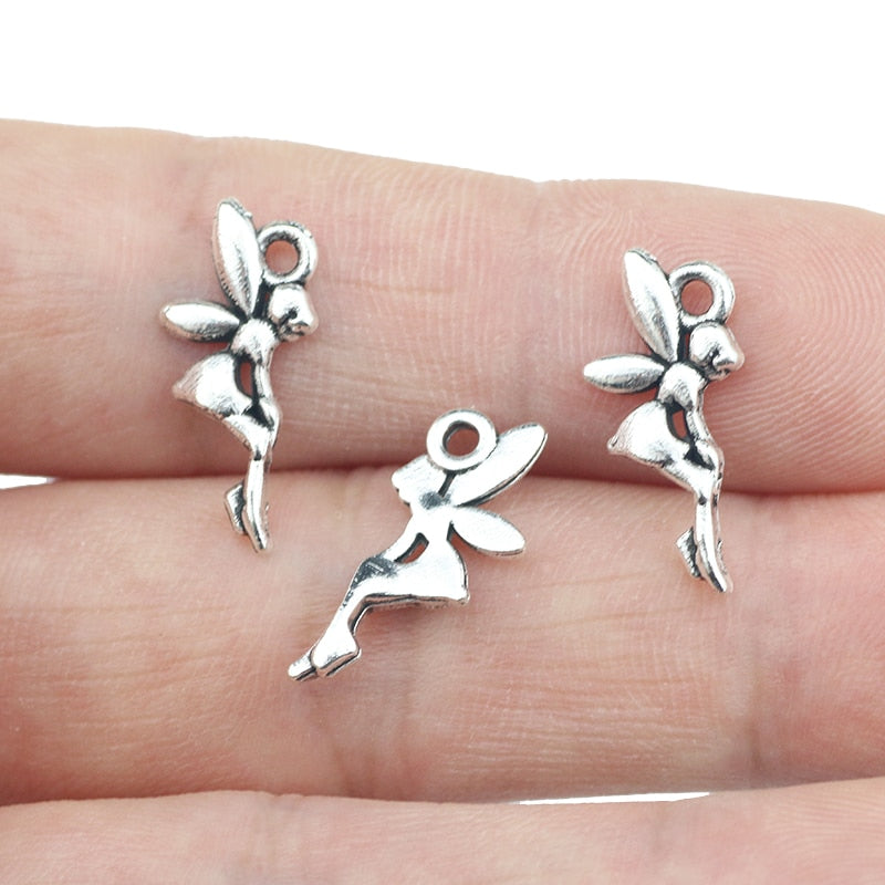 High Quality 50 Pieces/Lot 18mm*7mm Tibetan Silver Flying Angel Girl Charm Fairy Charms For Jewelry Making EF3686