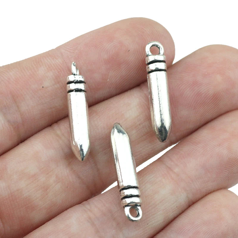 6 Pieces/Lot 24mm*5mm Antique Silver Plated Bullet Charms Metal Charm For Jewelry Making