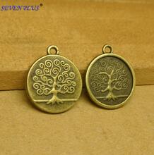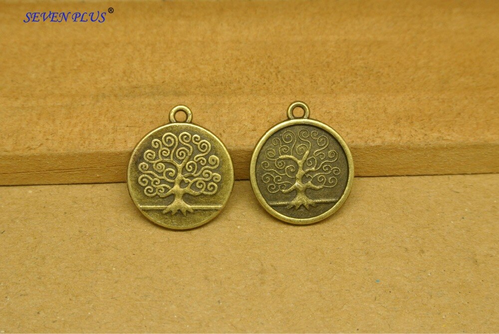 High Quality 8 Pieces/Lot 17mm*20mm Antique Bronze Plated Life Tree Round Disc Tree Of Life Charms EF3925