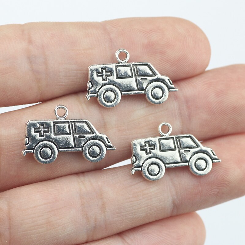Newest 10 Pieces 14*22mm Mixed Alloy Antique Silver Color Ambulance Charms Keychain Pendant Accessory For DIY Jewelry Making
