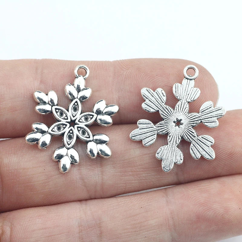 10Pcs 22*27mm Antique Silver Color Pretty Snowflake Charms Necklace Earrings Pendant For DIY Jewelry Making Wholesale
