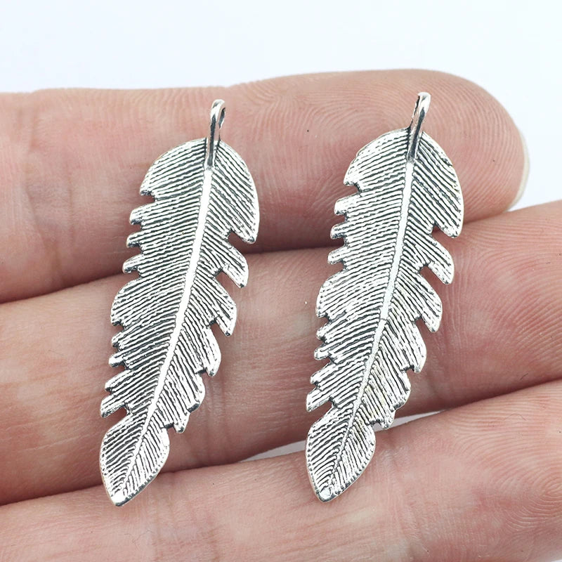 12Pieces 12*38mm Antique Silver Plated Feather Leaf Charms Necklace Earrings Pendant Phone Charms For Jewelry Making