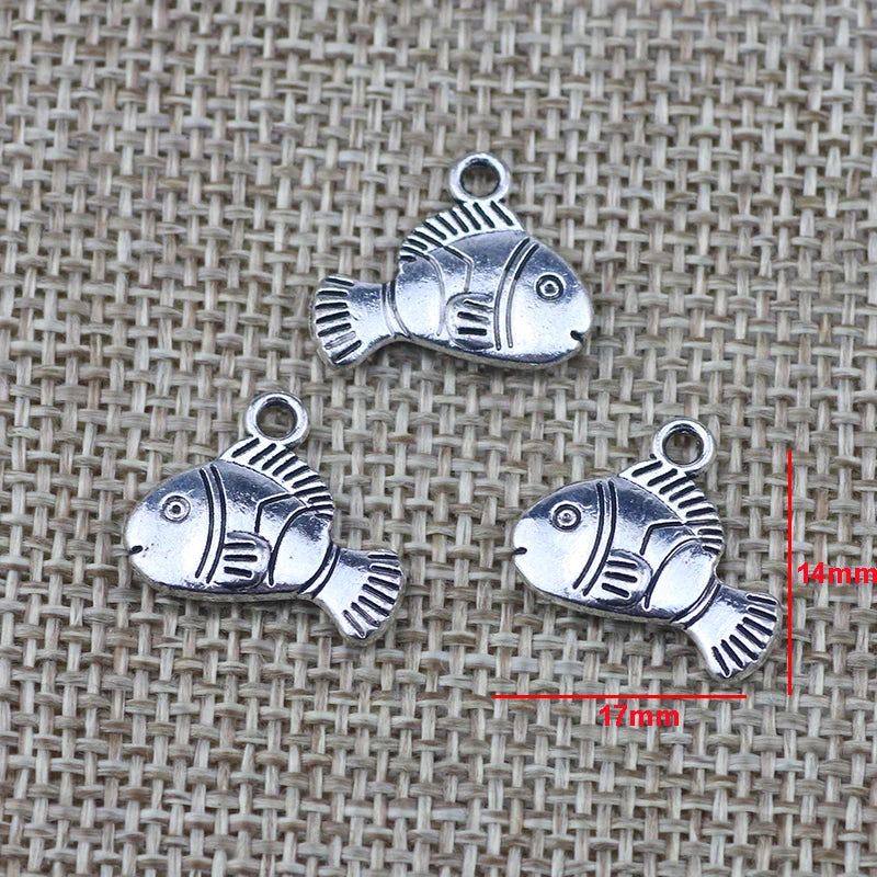 5Pieces 14*17mmAlloy Antique Silver Color Cute Fish Charms Bracelet Pendant Accessory For DIY Jewelry Making