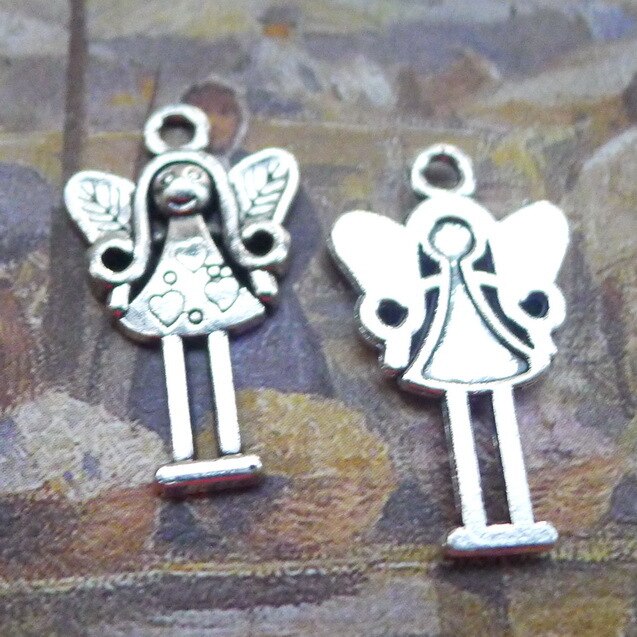 Newest 15Pieces 15*25mm Mixed Alloy Antique Silver Color Girl Fairy Charms Bracelet Pendant Accessory For DIY Jewelry Making