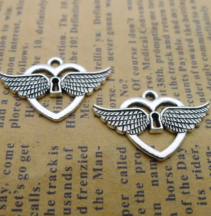 20Pcs 16*25mm Antique Silver Plated Alloy Angel Wings Charms Heart Pendant Accessories Charms For Diy Jewelry Making