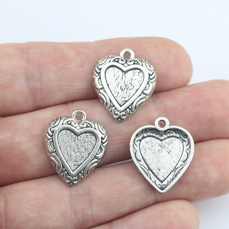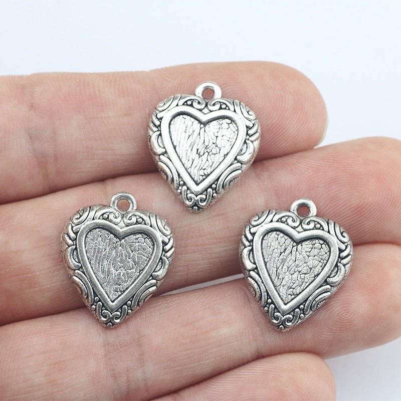 Newest 20Pieces 17*20mm Mixed Alloy Antique Silver Color Pretty Heart Charms Necklace Pendant Accessory For DIY Jewelry Making