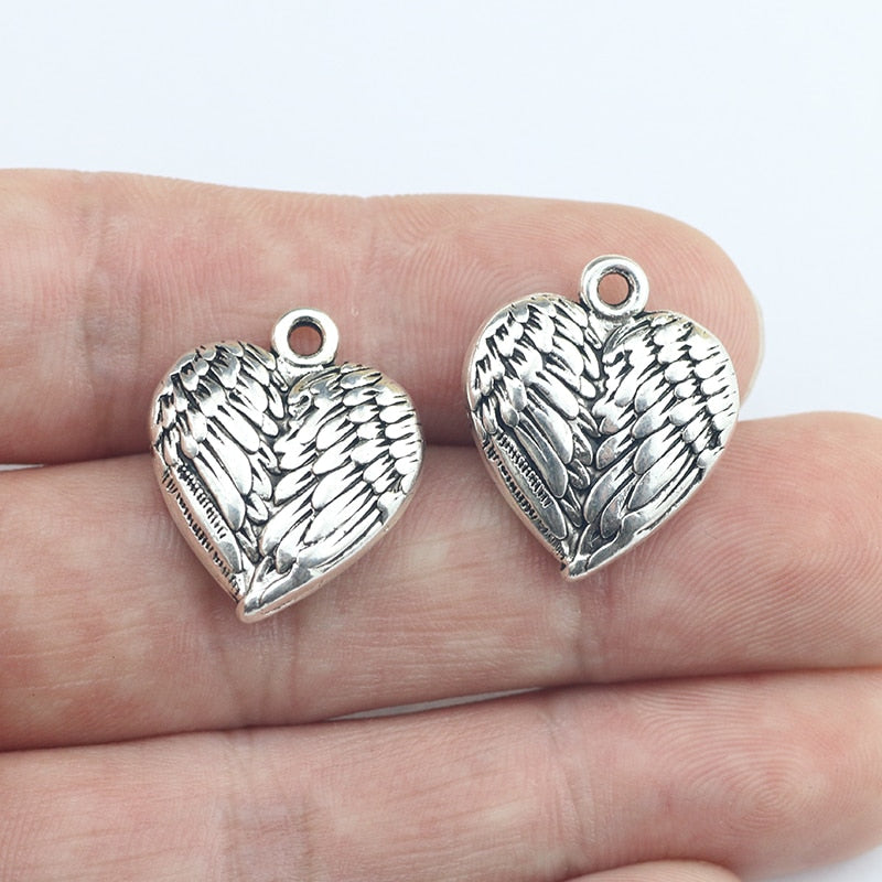 Newest 5Pieces 18*21mm Antique Silver Color Heart Wings Charm Keychain Necklace Pendant Accessory Charms For DIY Jewelry Making