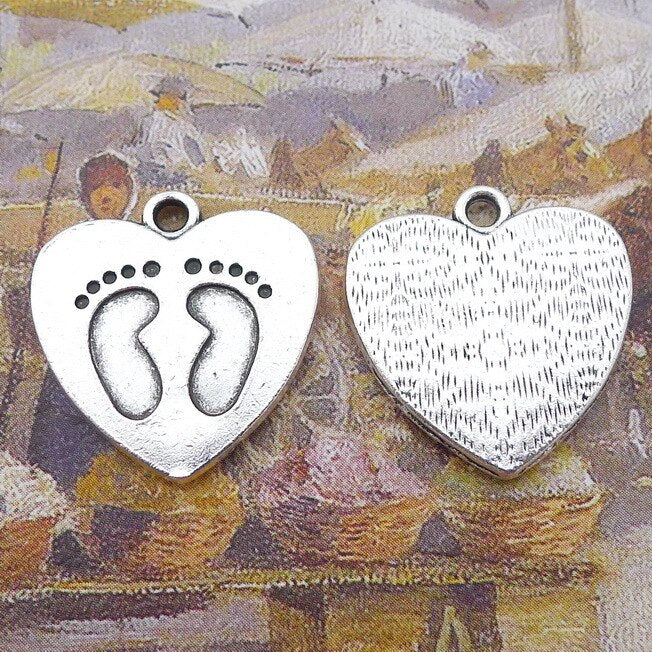 Newest 6Pieces 20*21mm Mixed Alloy Antique Silver Color Heart Footprint Charms Necklace Pendant Accessory For DIY Jewelry Making