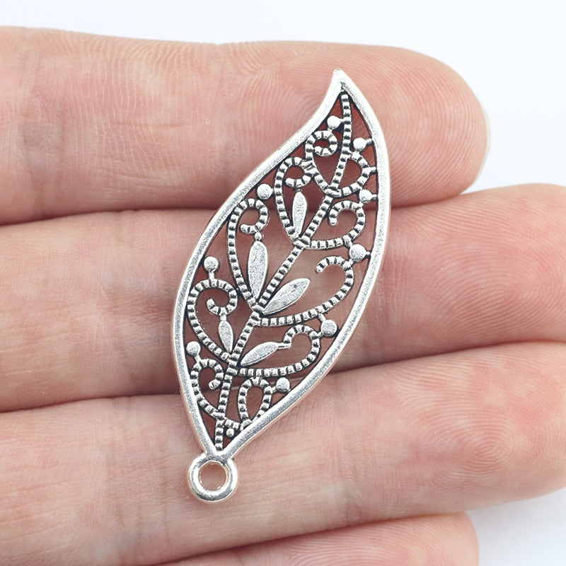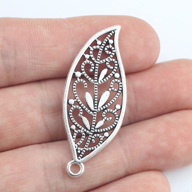 Newest 8Pieces 13*43mm Mixed Alloy Antique Silver Color Hollow Leaf Charms Fashion Chain Pendant Necklace For DIY Jewelry Making