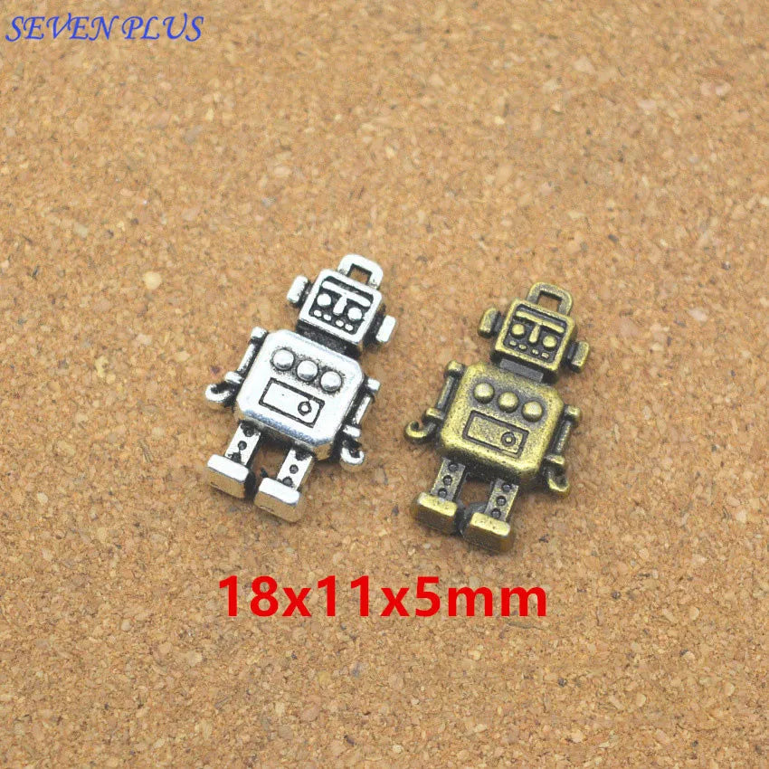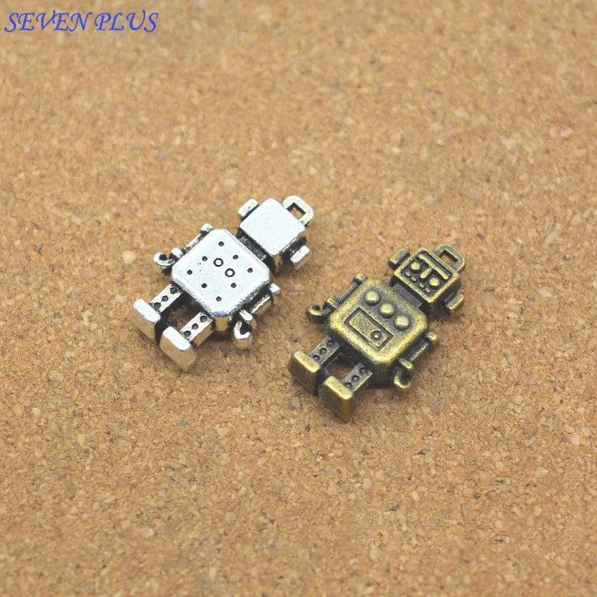 10 Pieces/Lot 18mm*11mm Antique Silver plated Or Antique Bronze 3D Robot Charms For Jewelry Making