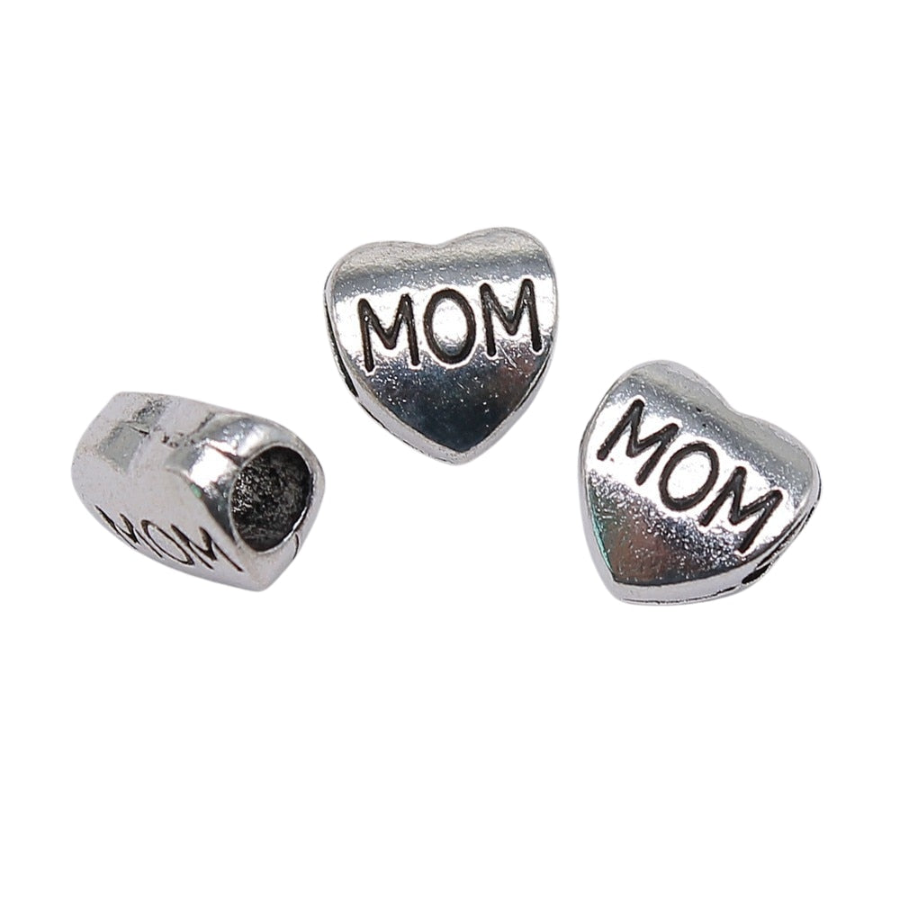 WYSIWYG 10pcs 10x10mm Heart Mom European Beads Big Hole Beads Mom Heart Beads Charms Mom Heart Charm