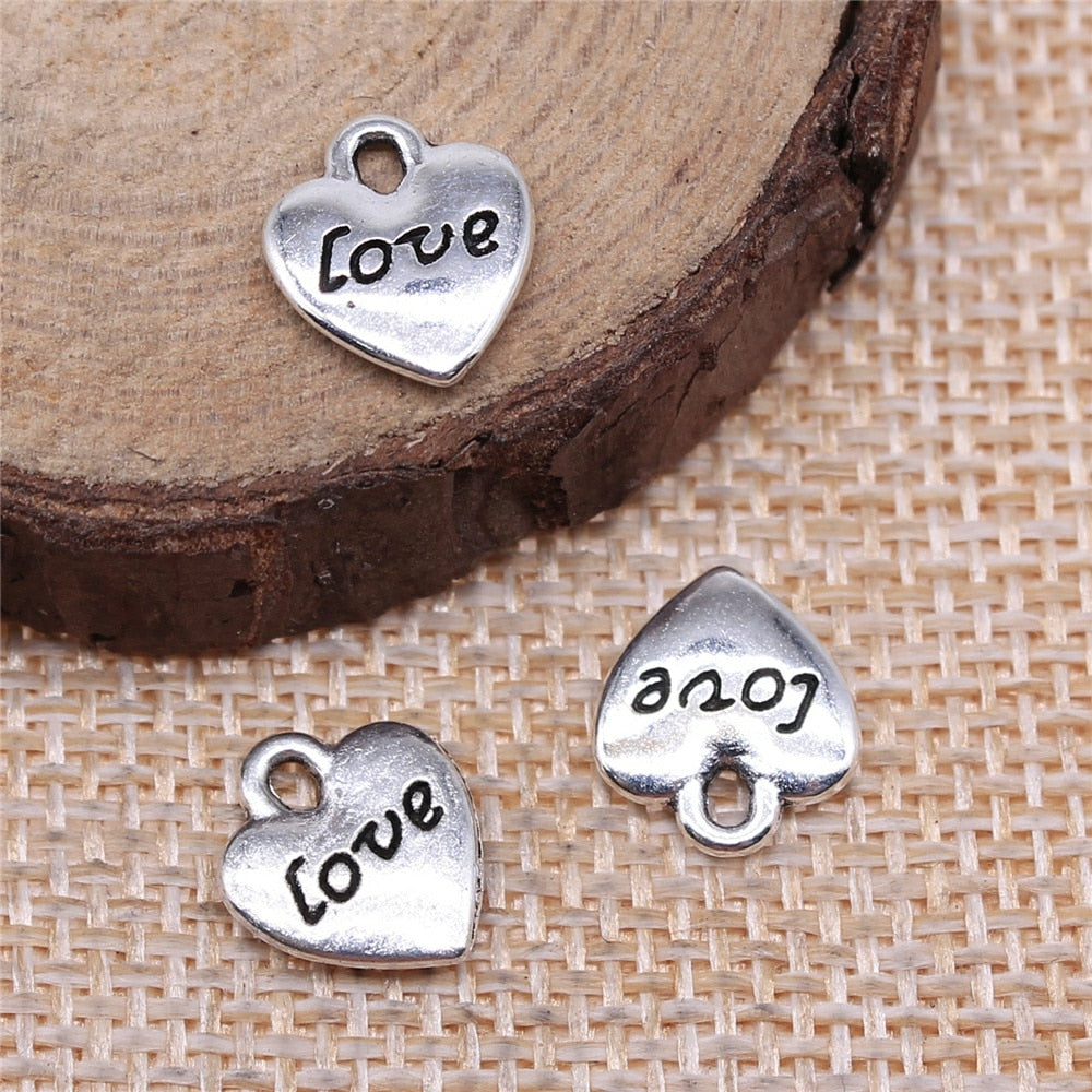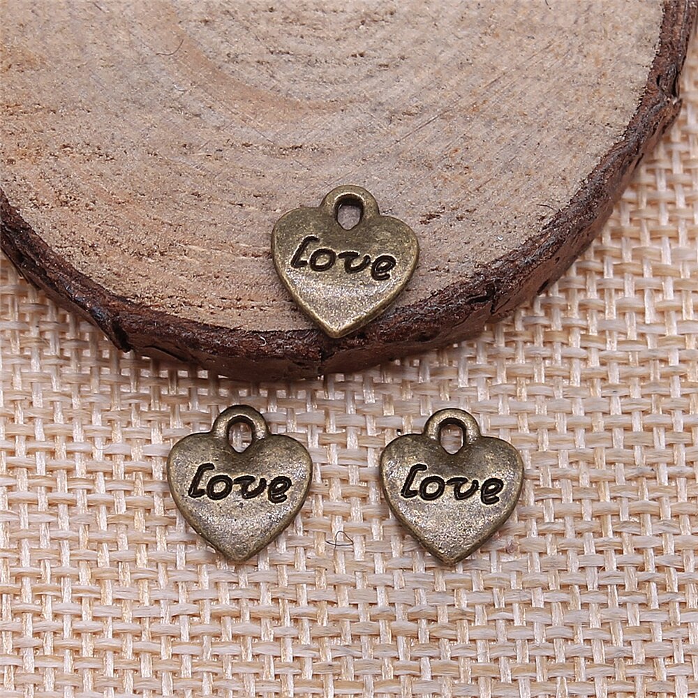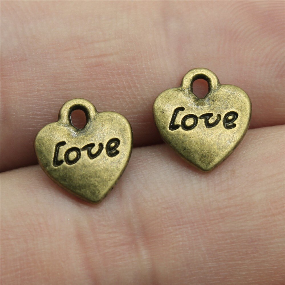 WYSIWYG 10pcs 11x10mm Antique Bronze Double Sided Love Heart Charms Tiny Heart Love Charms Love Heart Charms