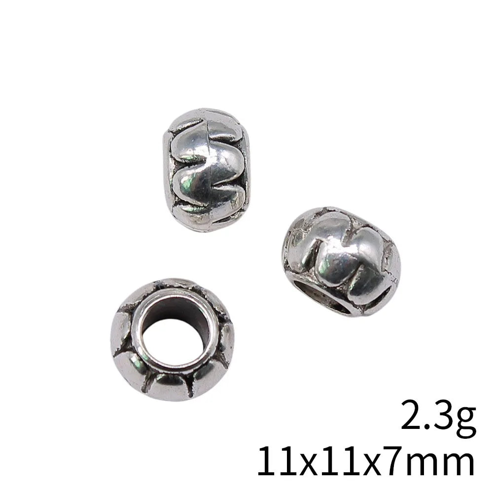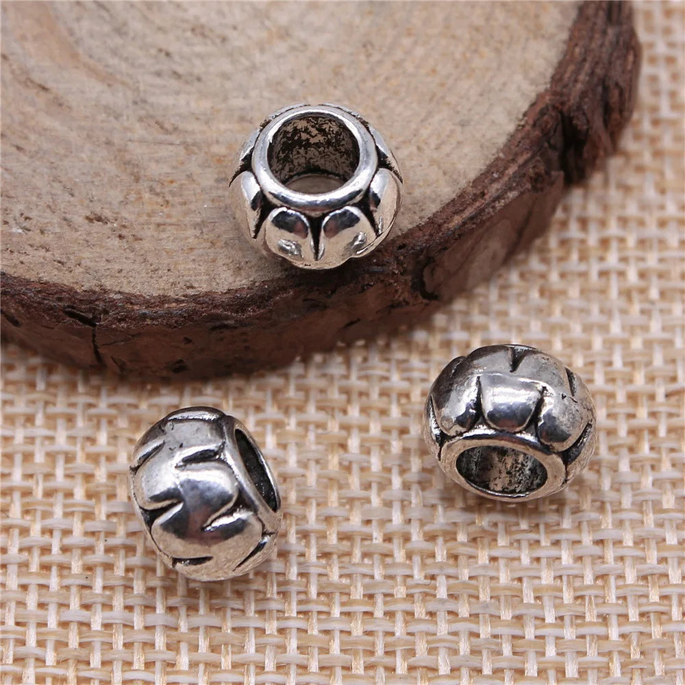 10pcs 11x11x7mm Antique Silver Color Carved European Big Hole Beads Spacer Beads For DIY Jewelry Making