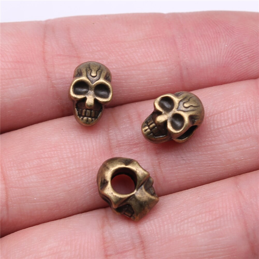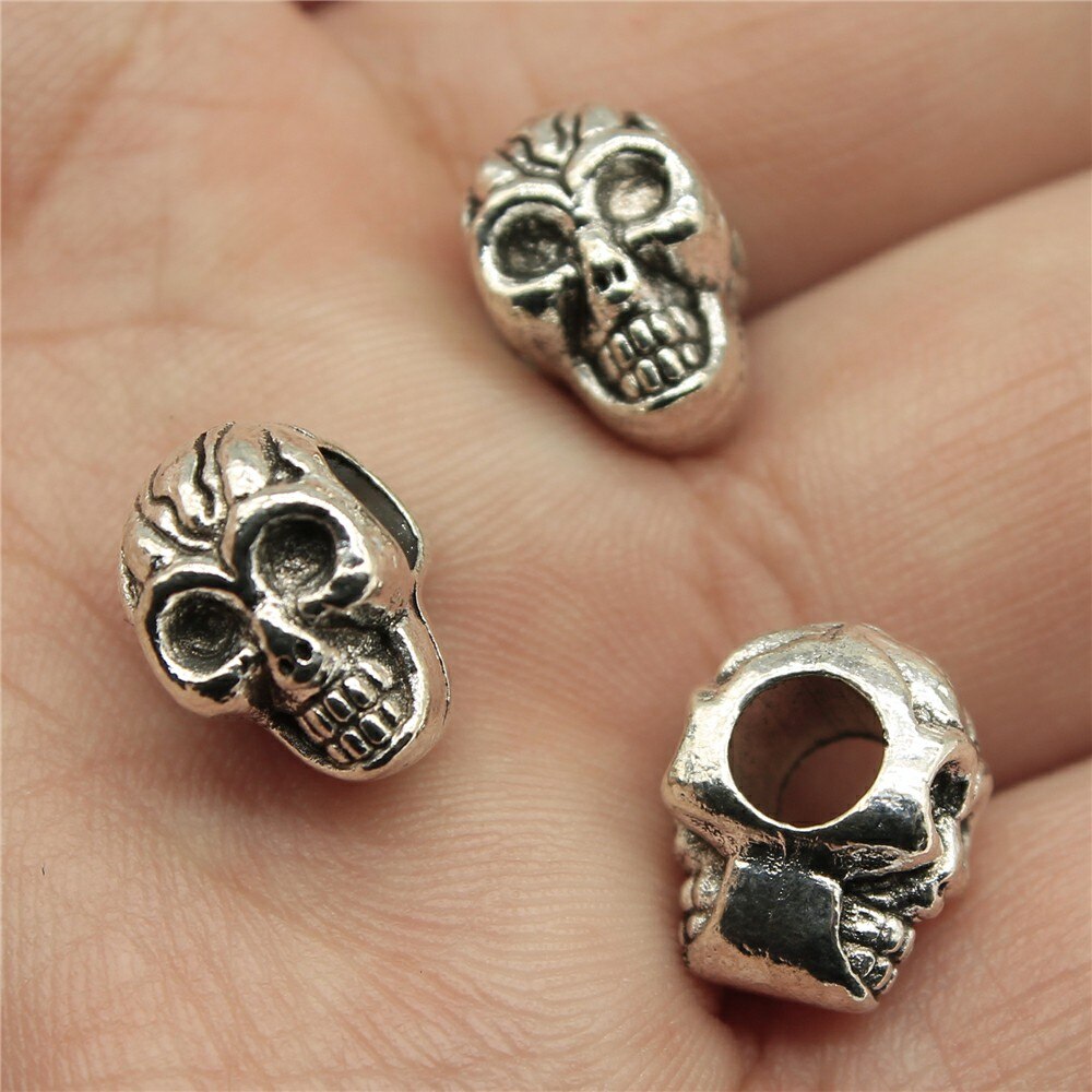 WYSIWYG 10pcs 12x9x7mm Skull European Spacer Beads Skull Beads Charms Double Sided Skull Beads For Jewelry Making