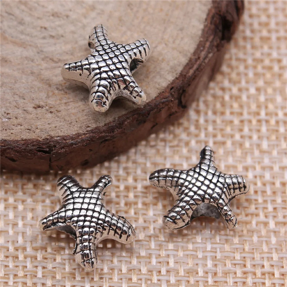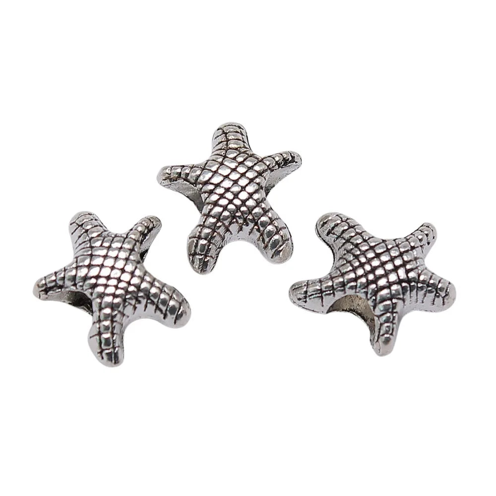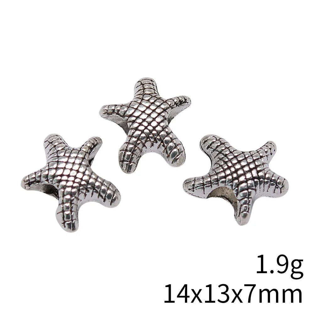 10pcs 14x13x7mm Antique Silver Color Starfish European Big Hole Beads Handmade Jewelry Findings For DIY Jewelry Making
