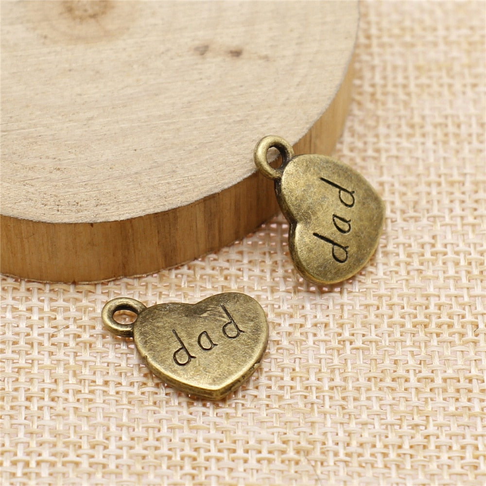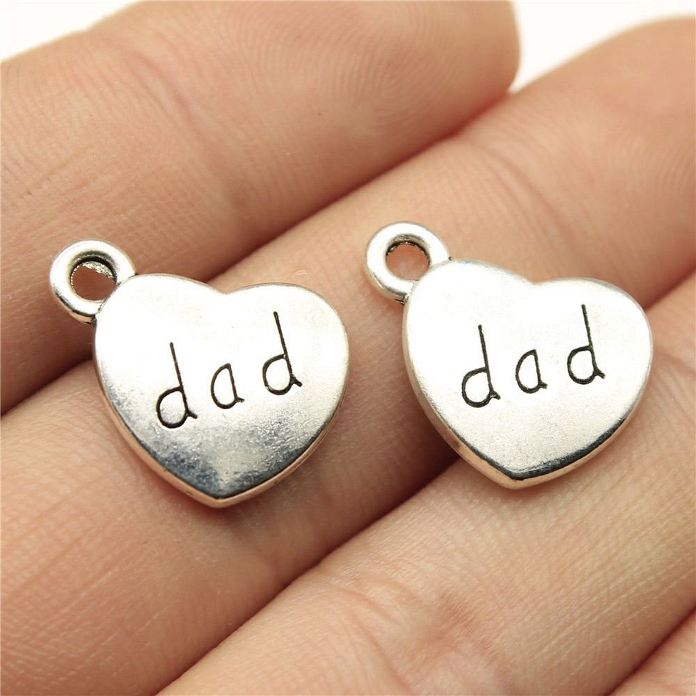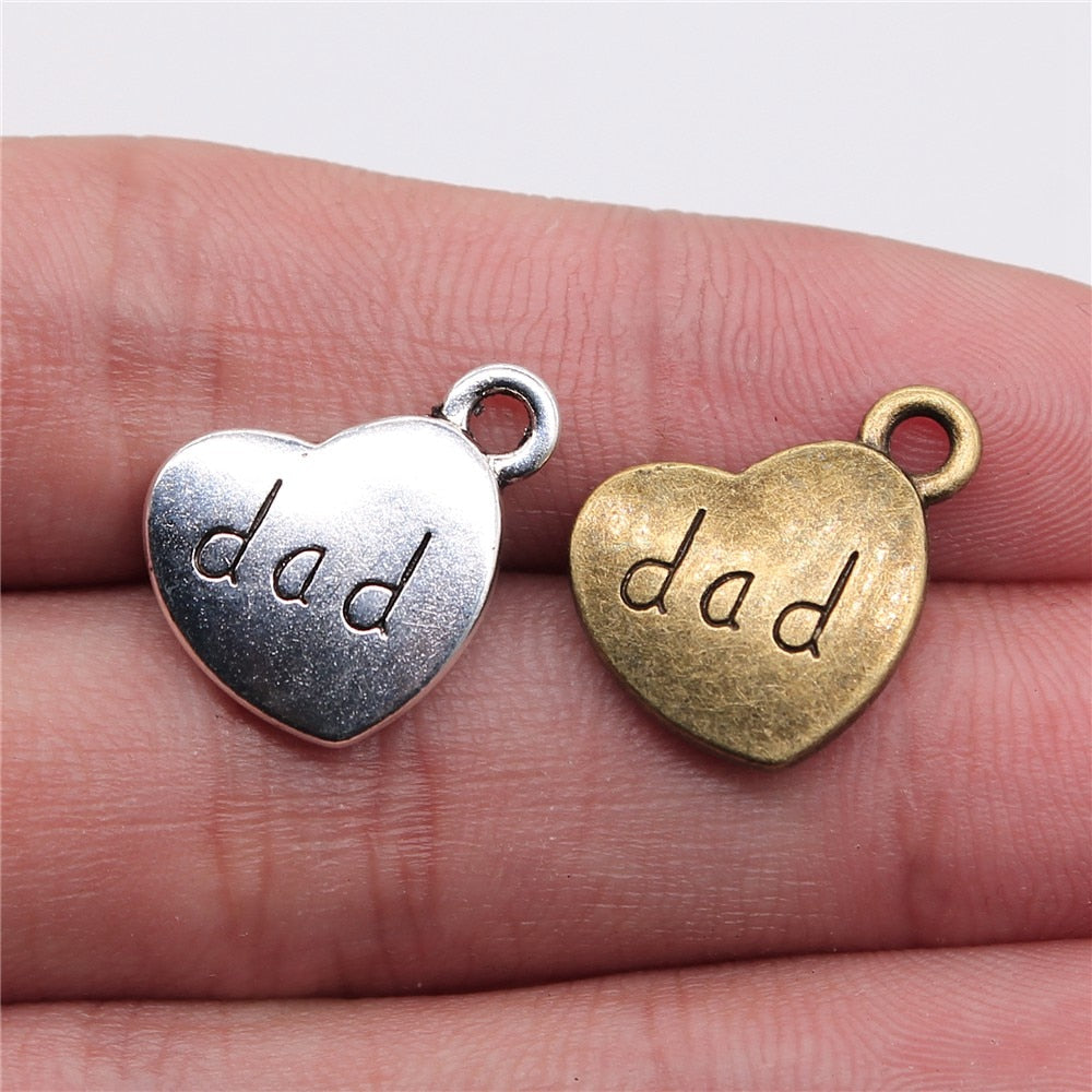 WYSIWYG 10pcs 15x18mm Pendant Dad Heart Double Sided Dad Heart Charm Pendants For Jewelry Making Dad Pendants