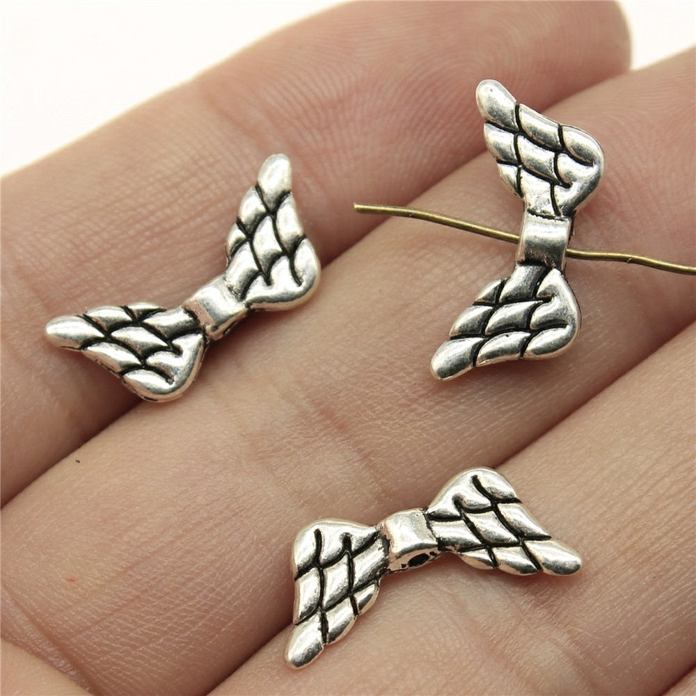 WYSIWYG 10pcs 19x9mm Angel Wing Small Hole Spacers Beads Charms DIY Wing Spacer Bead For Jewelry Making