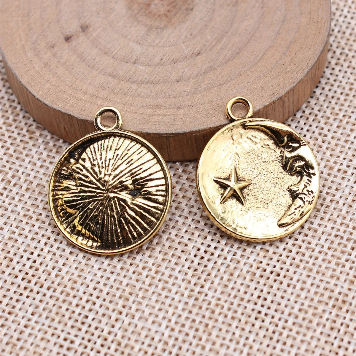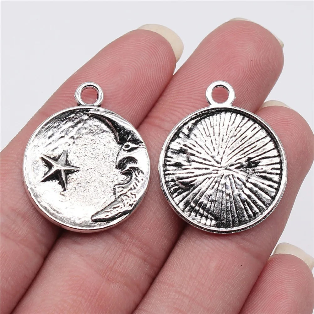 10pcs 23x27mm 3 Colors Moon Stars Charms Pendant For DIY Jewelry Making Handmade Jewelry Craft Findings