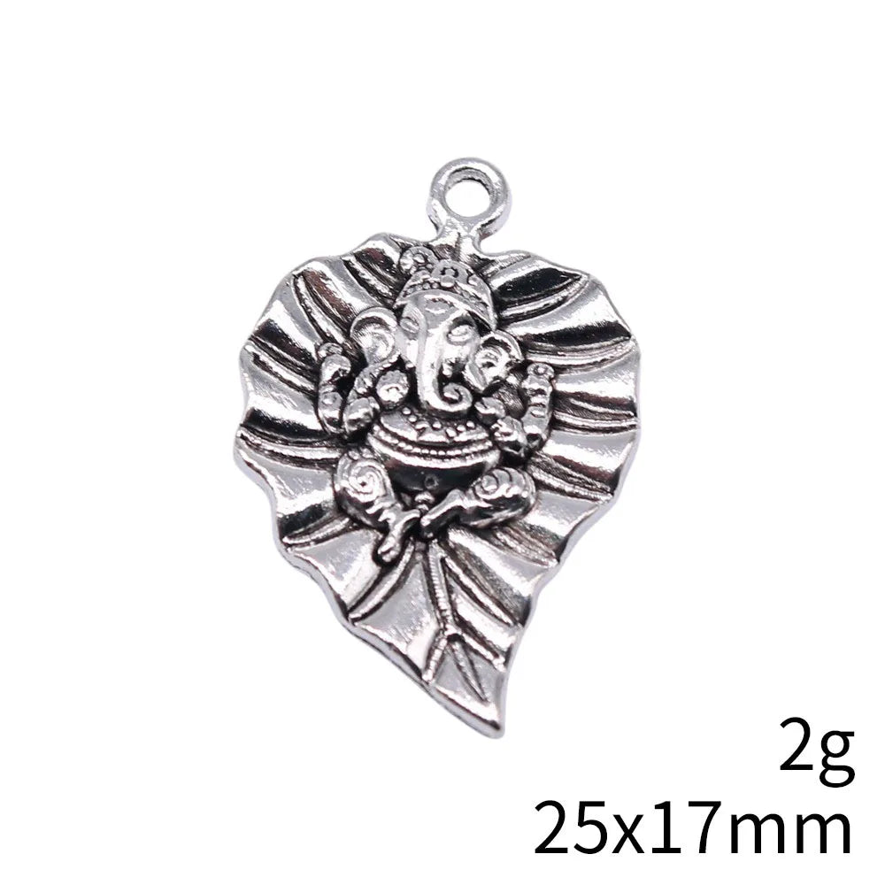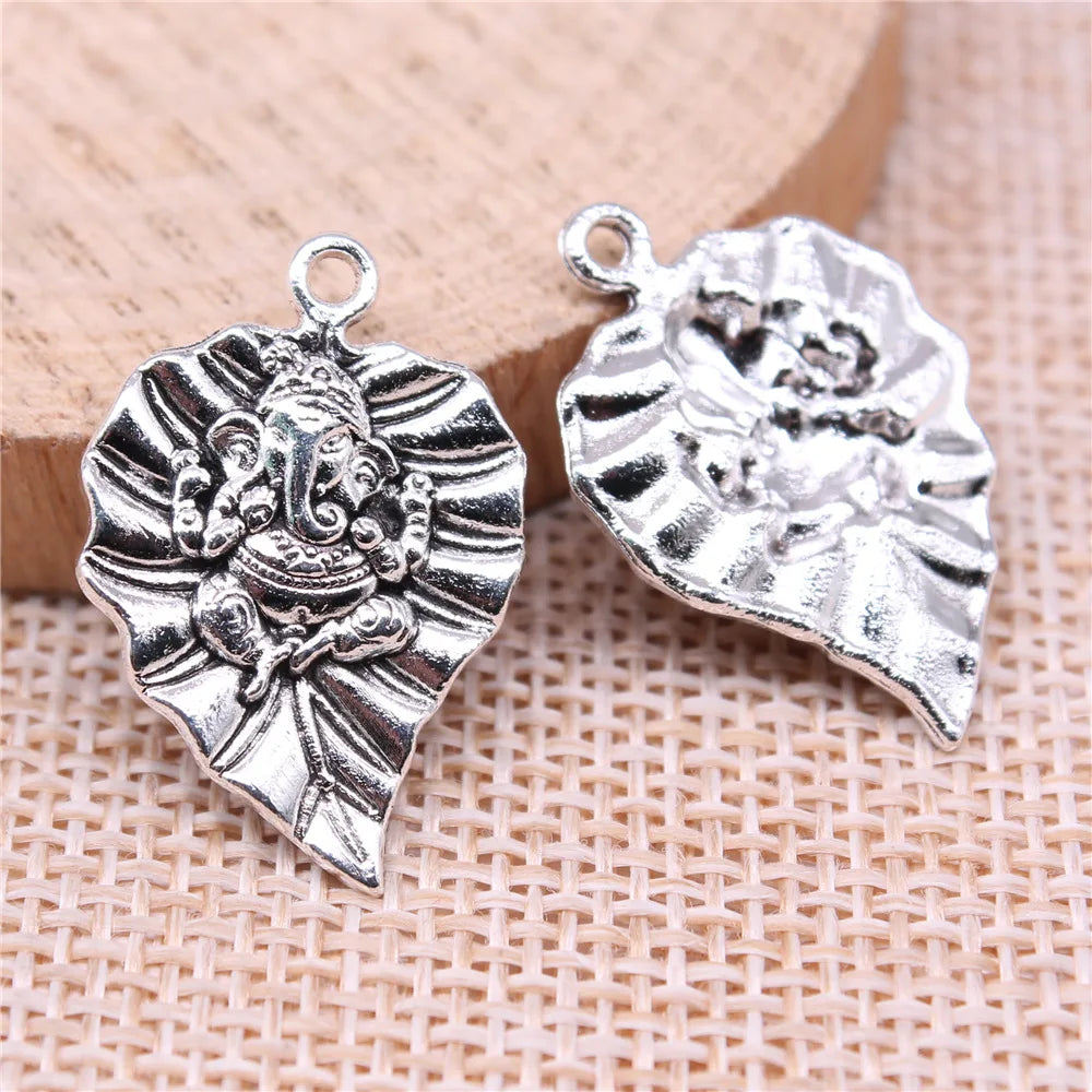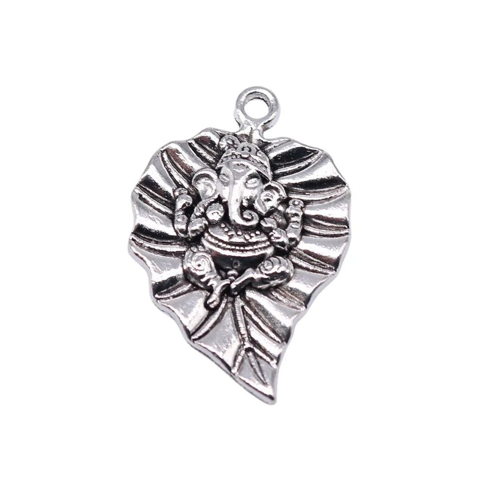 10pcs 25x17mm Antique Silver Color Leaf Elephant Charms Pendant For DIY Jewelry Making Handmade Jewelry Craft Findings