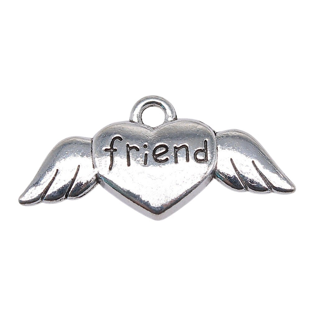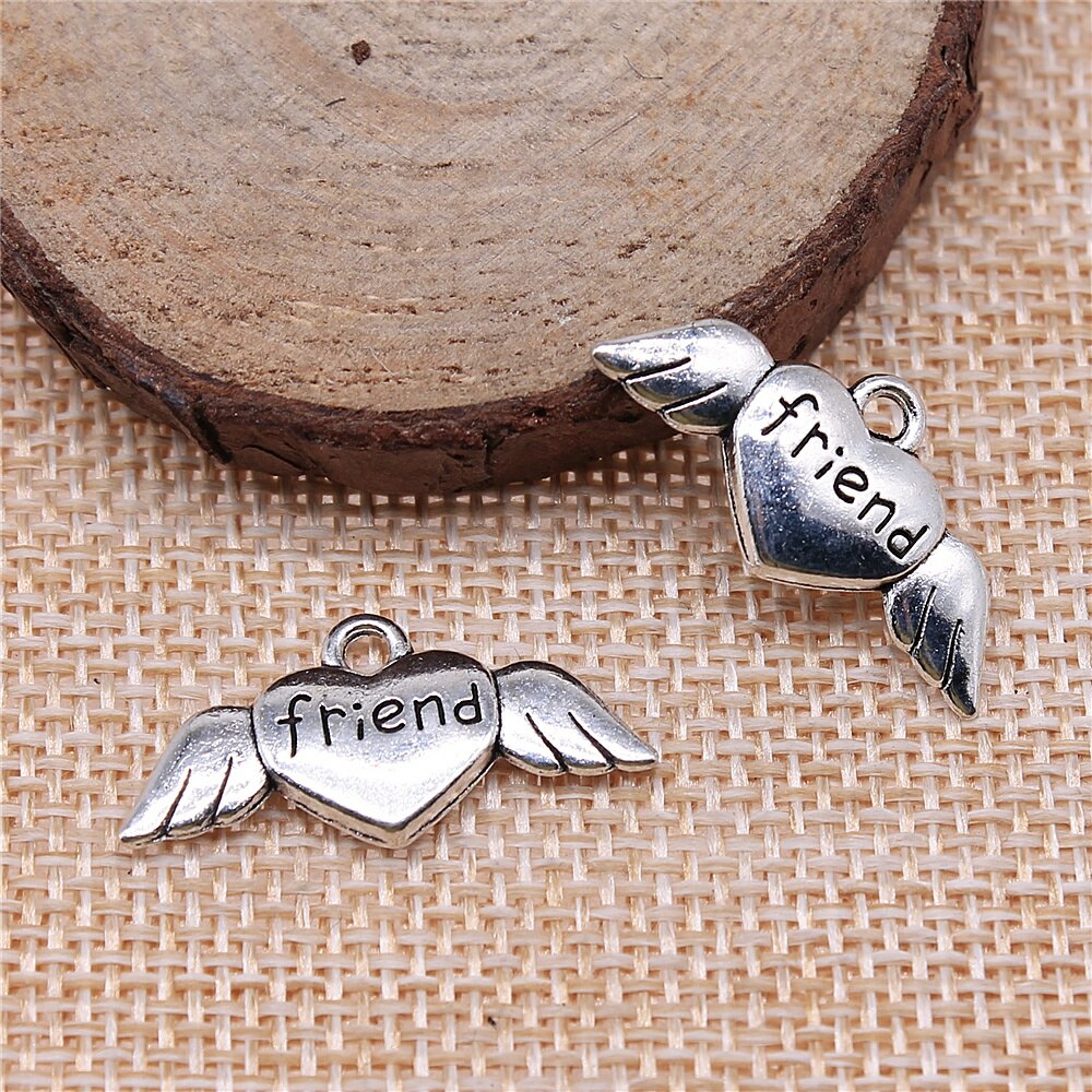 WYSIWYG 10pcs 26x12mm Angel Wings Friend Heart Pendant Heart Wings Charm Best Friend Heart Charm For Jewelry Making