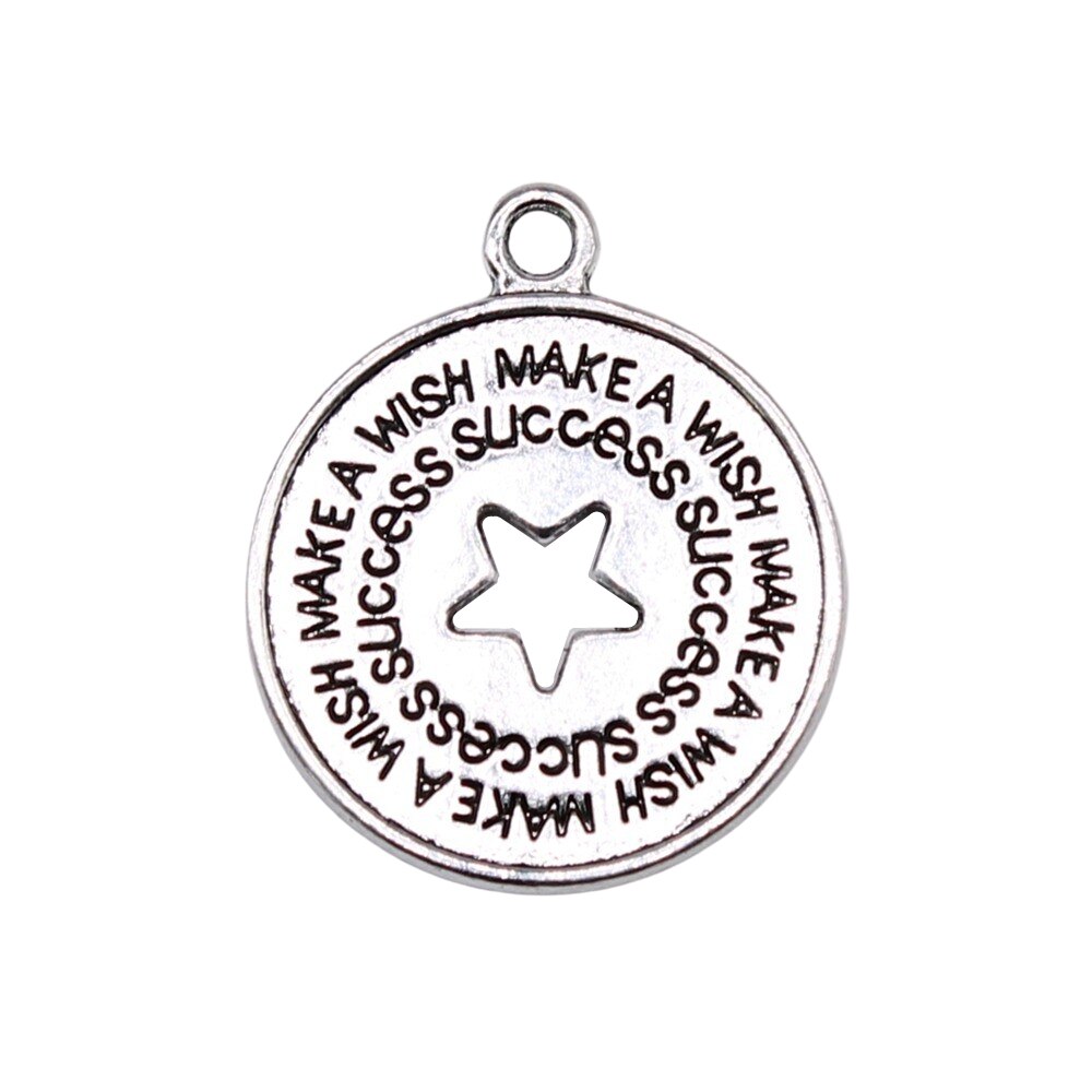 WYSIWYG 10pcs 26x22mm Charms Make A Wish Success Star Charms For Jewelry Making DIY Antique Silver Color Alloy Charms