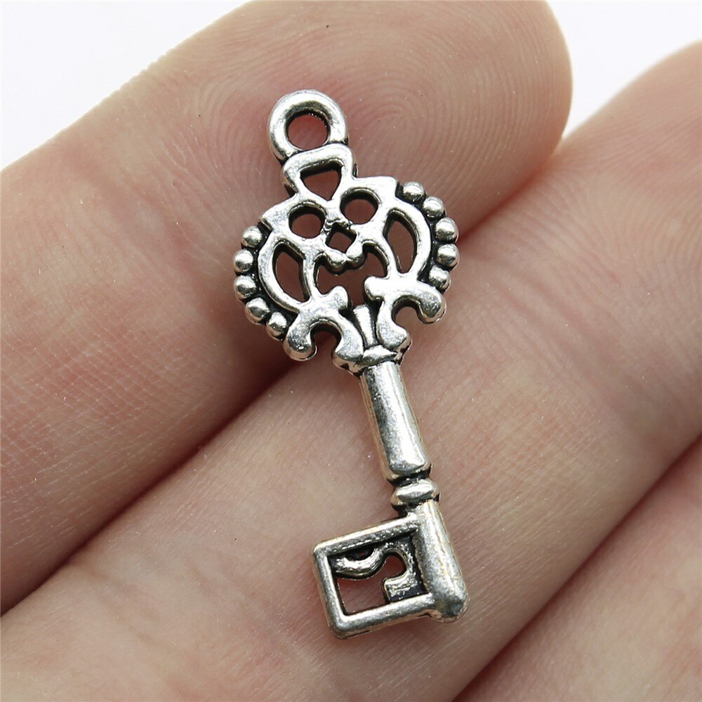 WYSIWYG 10pcs 28mm Key Charms For Jewelry Making Jewelry Accessories Antique Silver Plated Antique Bronze Plated