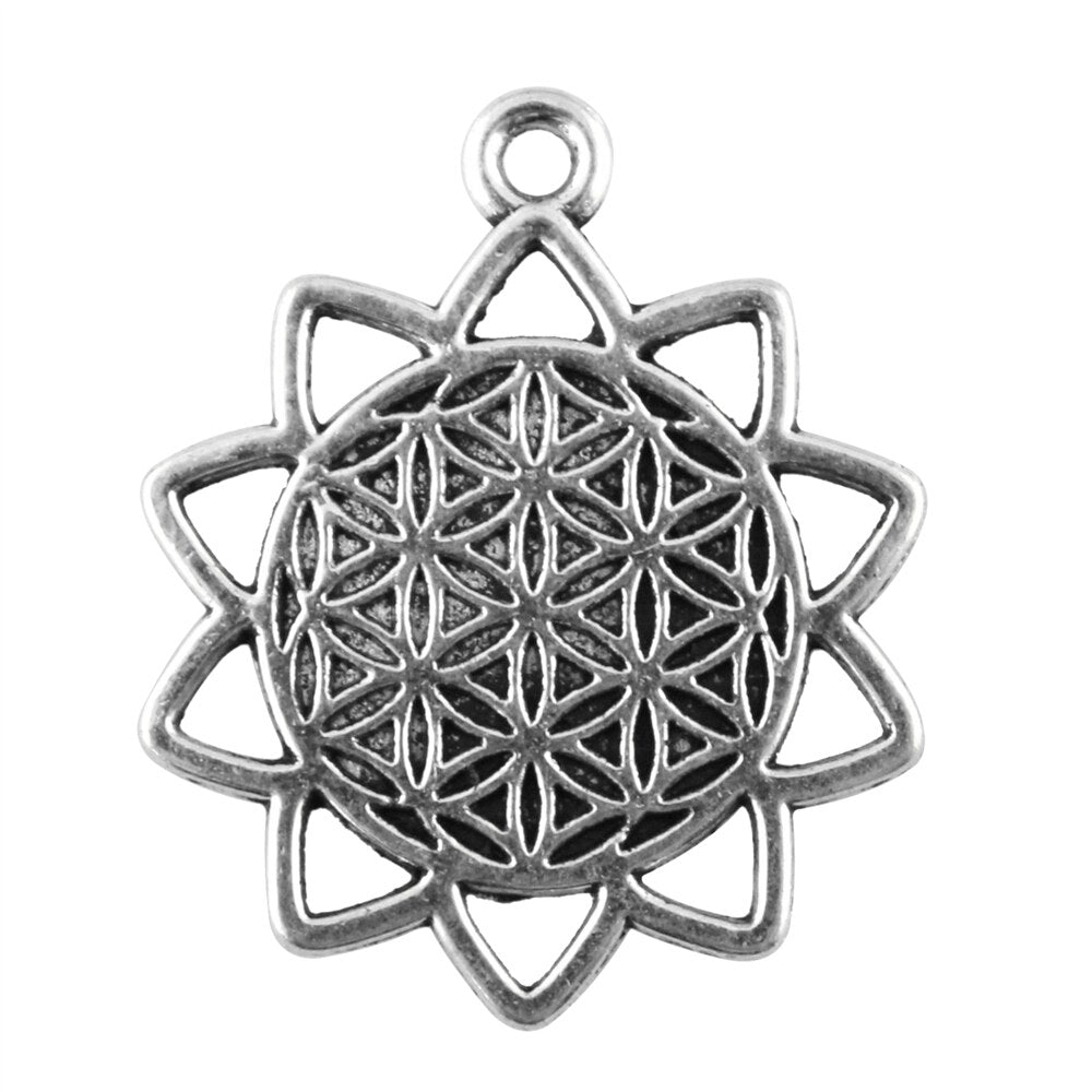 WYSIWYG 10pcs 29x25mm The Flower Of Life The Seed Of Life Charms For Jewelry Making Antique Silver Color Charms