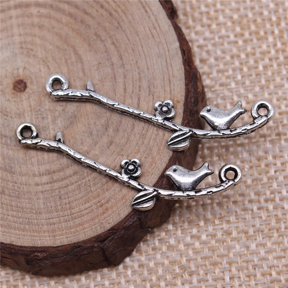 WYSIWYG 10pcs 39x8mm Bird Flower Branch Connector Charms Jewelry Making Jewelry Accessories