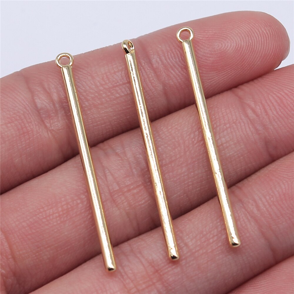 WYSIWYG 10pcs 3x41mm Long Strip Bar Charms Pendant Earring Making Jewelry Making High Quality KC Gold Color Alloy Charms