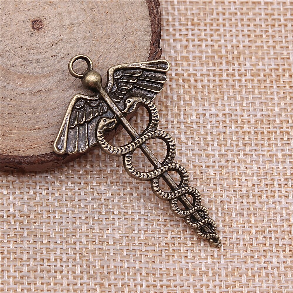 WYSIWYG 10pcs 49x30mm Pendant Caduceus Medical Symbol Caduceus Medical Symbol Charm Caduceus Medical Symbol Pendants