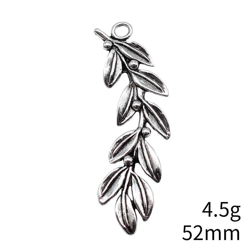 10pcs 52mm Antique Silver Color Olive Branch Charms Pendant For DIY Jewelry Making Handmade Jewelry Craft Findings