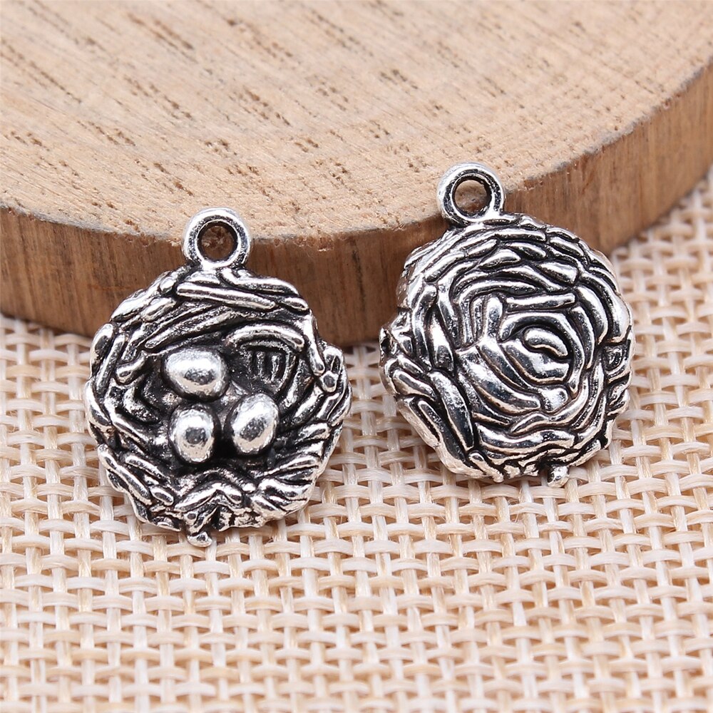 WYSIWYG 10pcs Charms 19x15mm Bird's Nest Bird Egg Charms For Jewelry Making DIY Jewelry Findings Alloy Charms Pendant