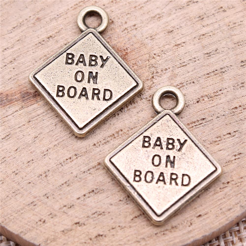 WYSIWYG 10pcs Charms 23x19mm Baby On Board Pendants For DIY Jewelry Making Jewelry Findings Antique Bronze Color Alloy Charms