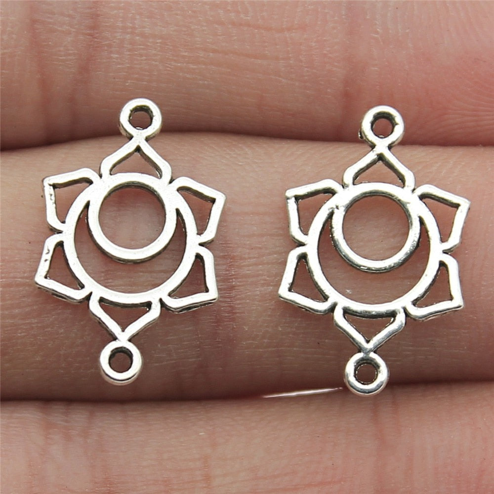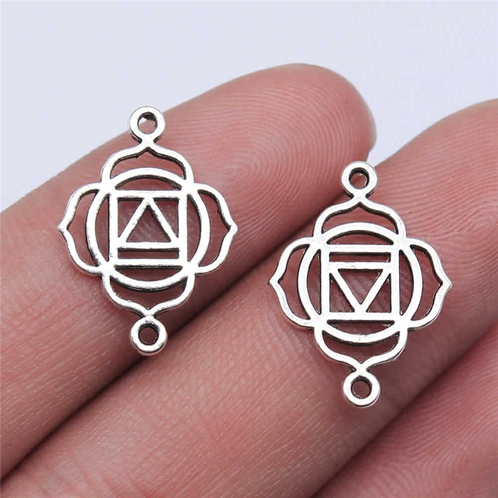 WYSIWYG 14pcs 20mm 7 Styles Chakra Charms Jewelry Accessories Handmade Craft Chakra Connector Charms Antique Silver Color