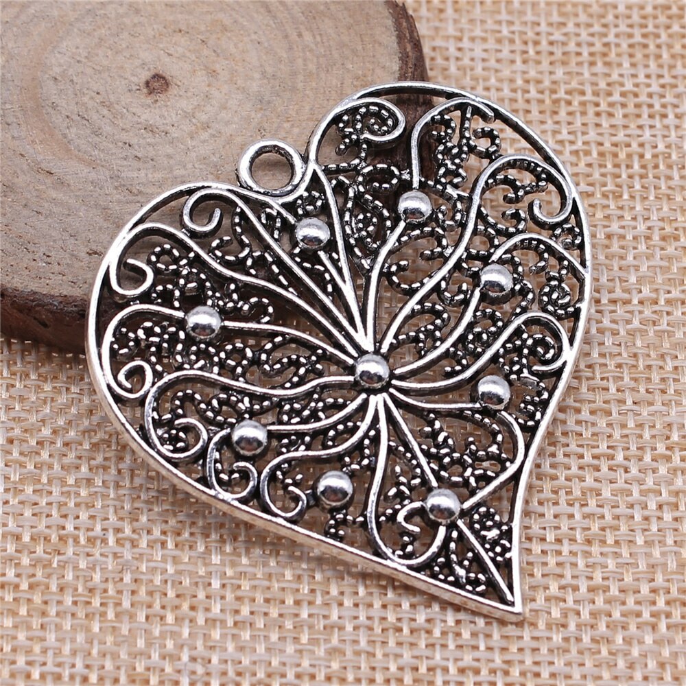 1pcs 52x52mm Filigree Carved Heart Charm Pendants Large Hollow Carved Heart Charm Pendant For Jewelry Making ef4439