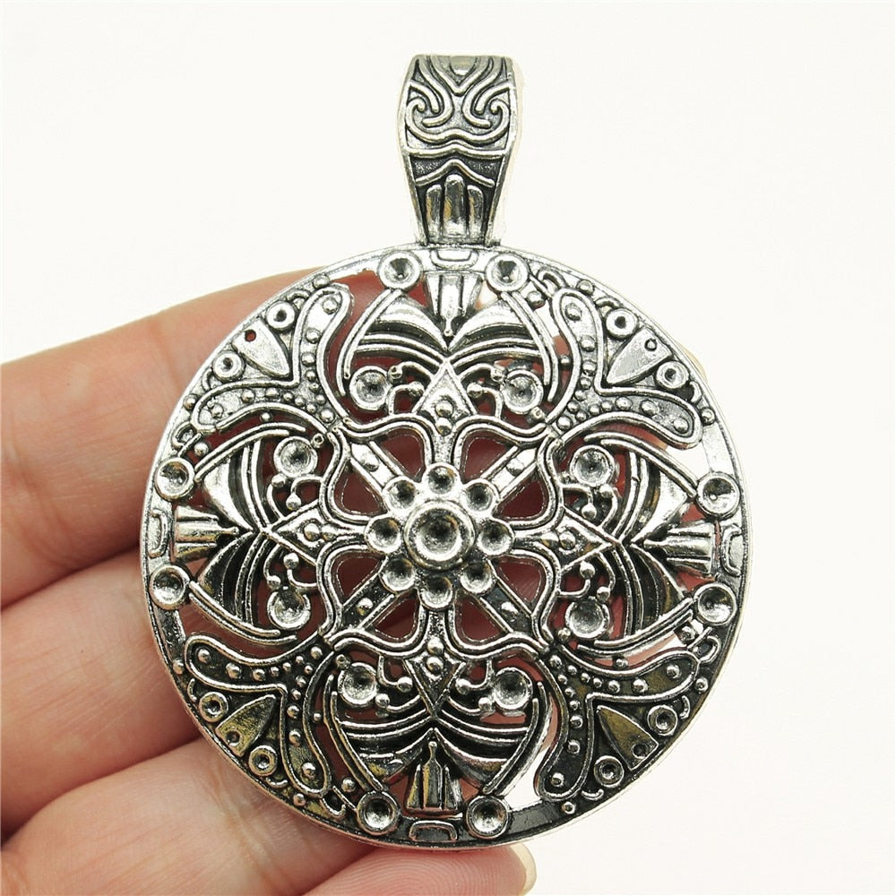 WYSIWYG 1pcs 61x46mm Bohemian Charm For Jewelry Making Bohemian Pendants Charm Gypsy Ethnic Hollow Carved Flower
