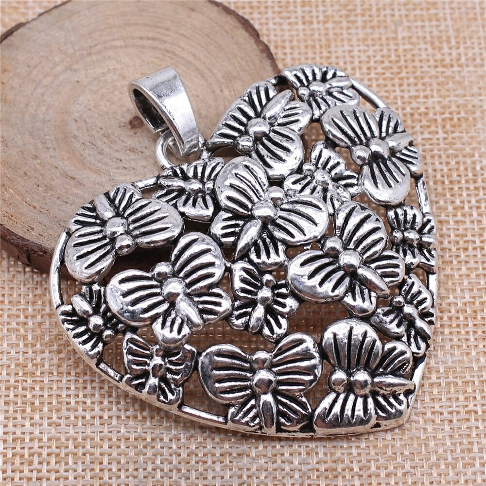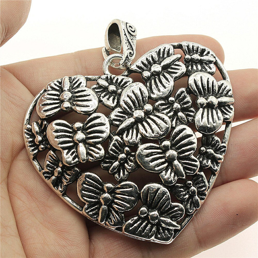 WYSIWYG 1pcs 61x66mm Big Hearts Charm With Butterfly Big Butterfly Heart Pendants Charm Large Butterfly Heart Charm EF3936