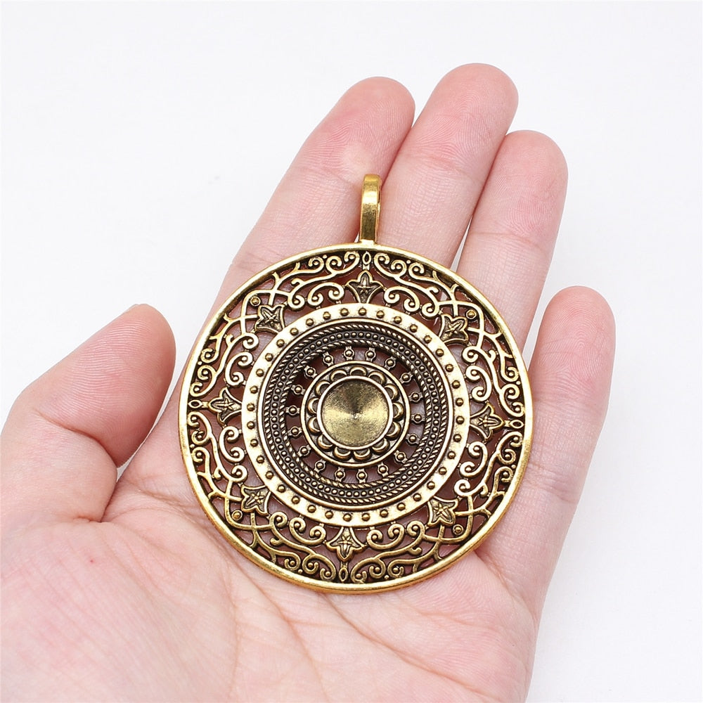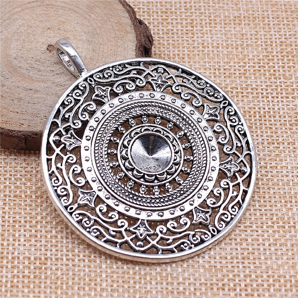 WYSIWYG 1pcs 68x56mm Round Mandala Flower Charm Pendants Filigree Round Mandala Charm For Jewelry Making