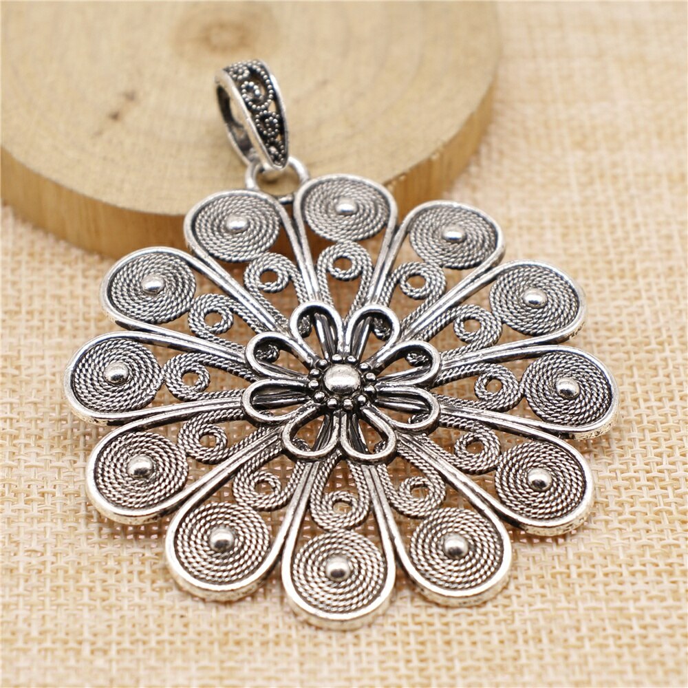 WYSIWYG 1pcs 75x61mm Big Pendants Charm Flower Charm Flower Of Life Charm Big Mandala Pattern Flower