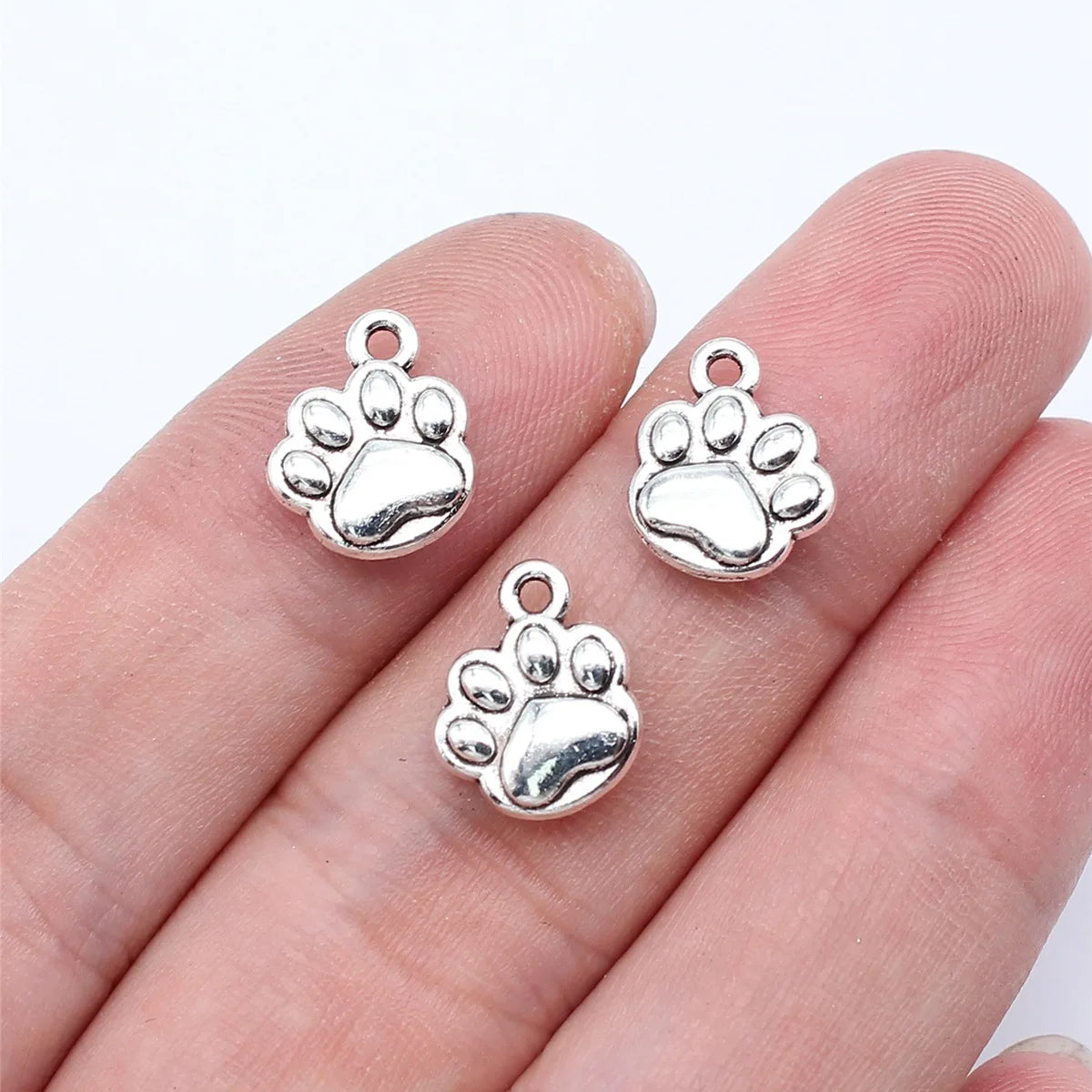 20pcs 12x10mm Antique Silver Color Dog Paw Charms Pendant For DIY Jewelry Making Handmade Jewelry Craft Findings