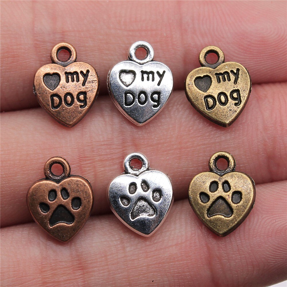 WYSIWYG 20pcs 13x10mm Dog Paw Charm Pendante Love My Dog For Jewelry Making Dog Paw Print Pendant Charm