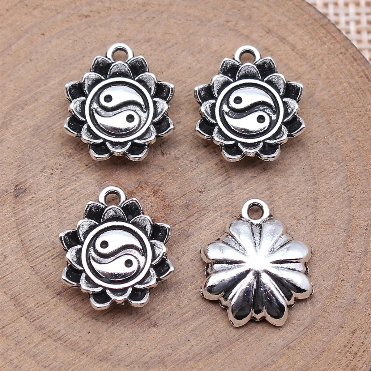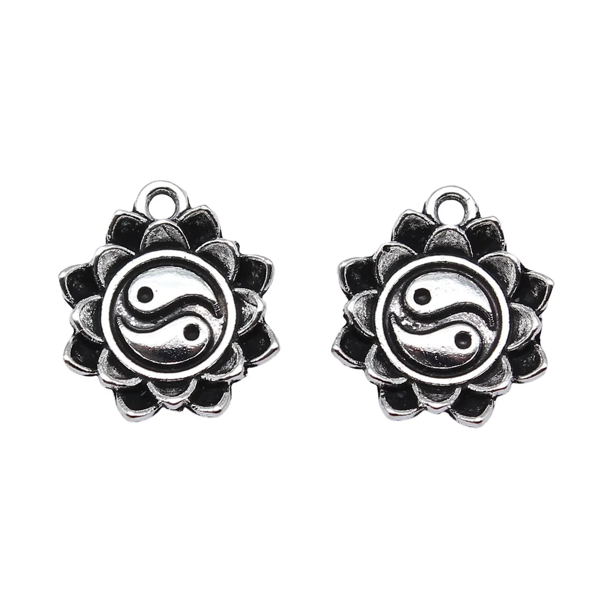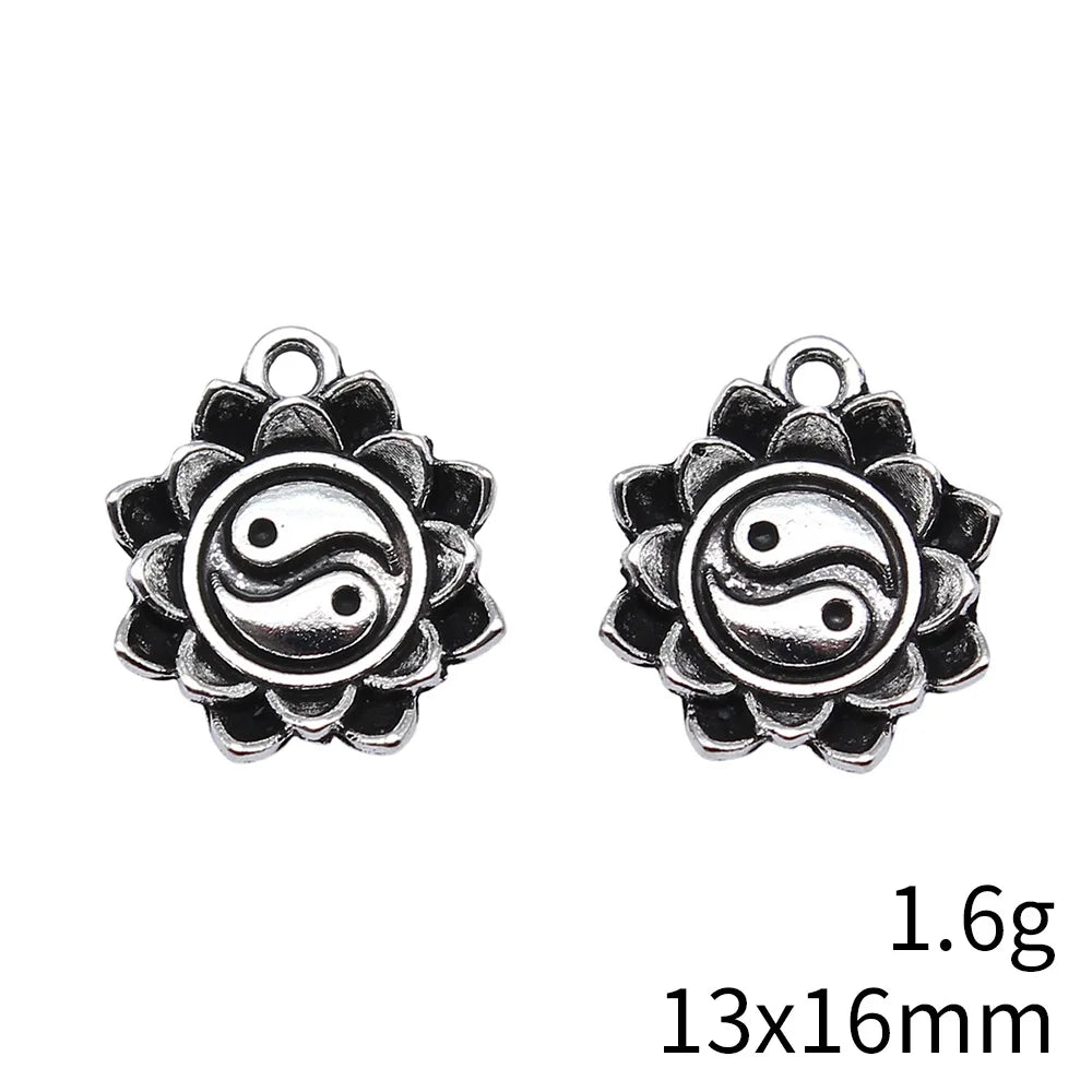 20pcs 13x16mm Antique Silver Color Chinese Style Tai Chi Lotus Charms Pendant For DIY Jewelry Making Jewelry Findings