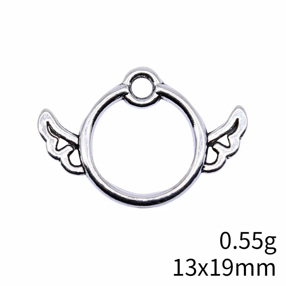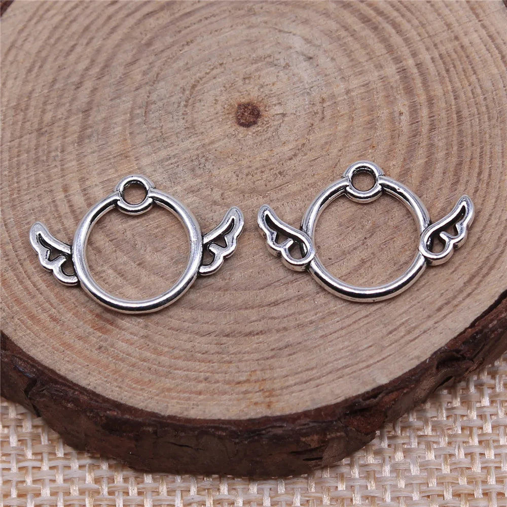 20pcs 13x19mm Antique Silver Color Round Wings Charms Pendant For DIY Jewelry Making Handmade Jewelry Craft Findings