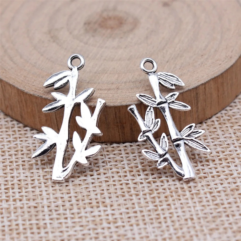 20pcs 15x29mm Antique Silver Color Bamboo Charms Pendant For DIY Jewelry Making Handmade Jewelry Craft Findings
