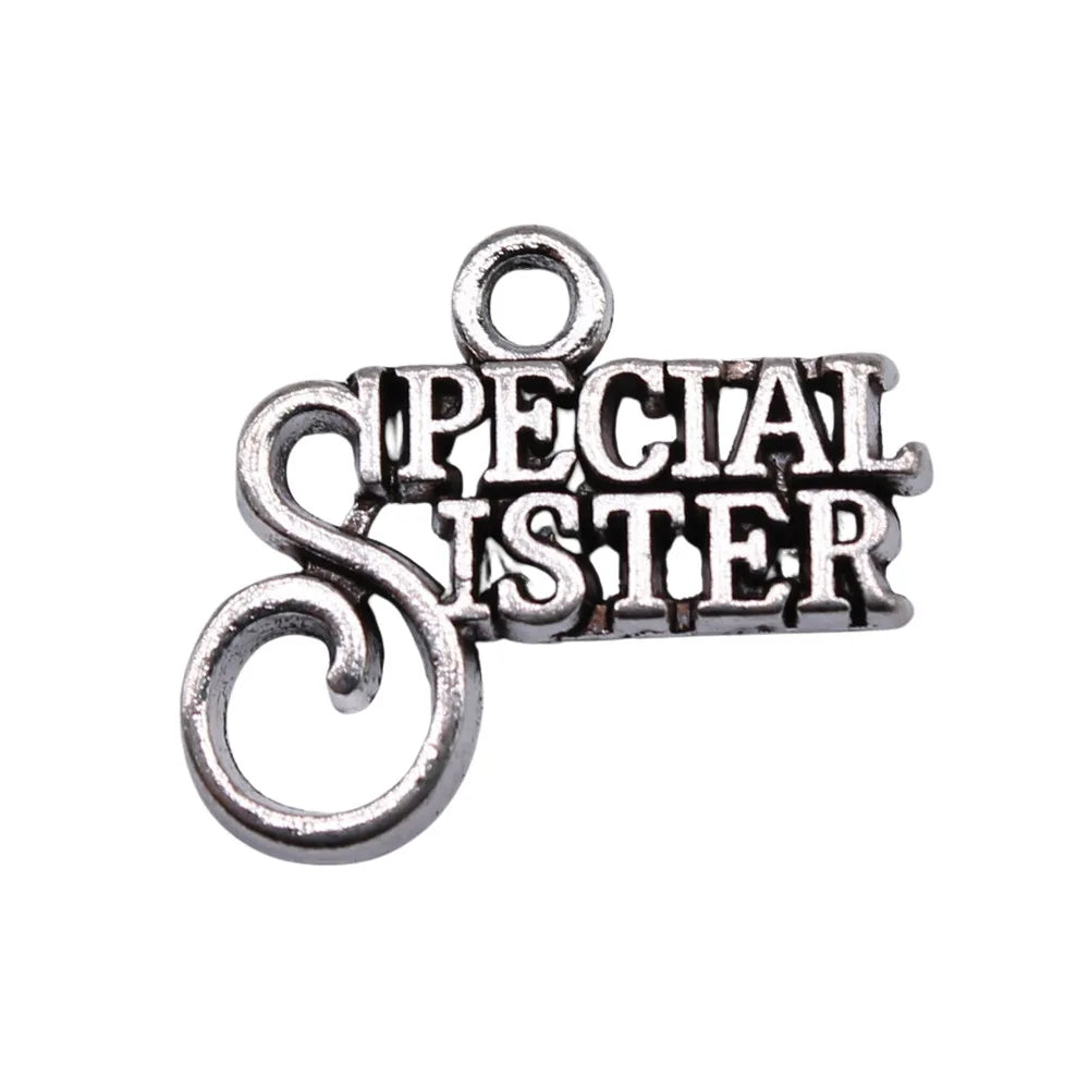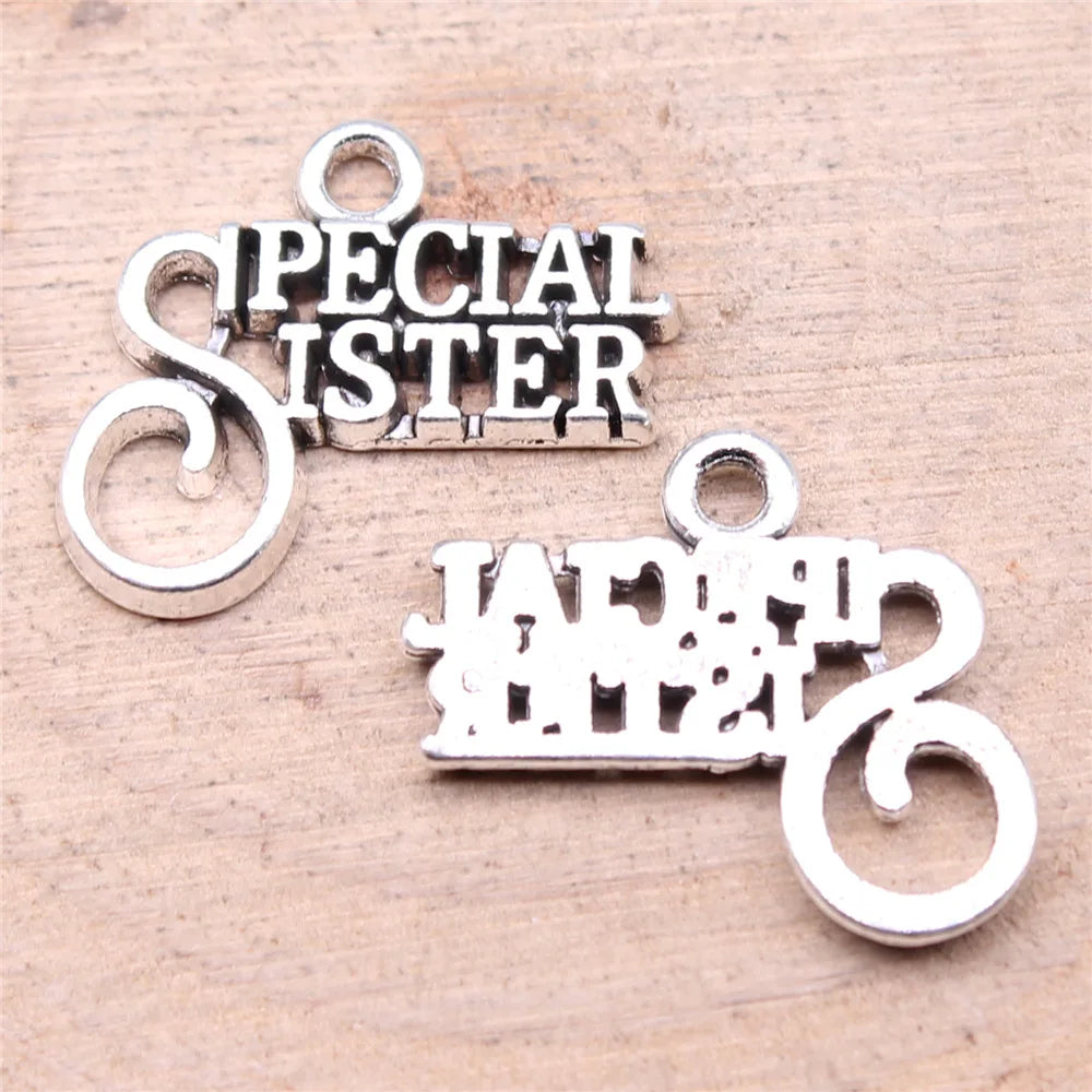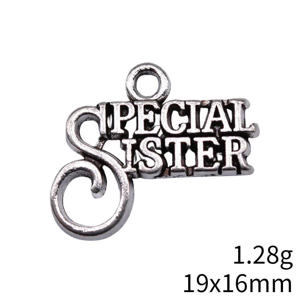 20pcs 19x16mm Antique Silver Color Special Sister Charms Pendant For DIY Jewelry Making Jewelry Craft Findings