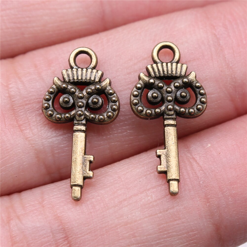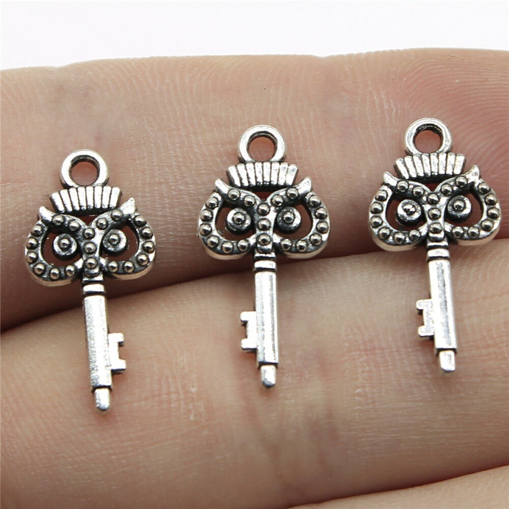 WYSIWYG 20pcs 21x10mm Owl Key Charms For Jewelry Making Jewelry Accessories Antique Silver Plated Antique Bronze Plated